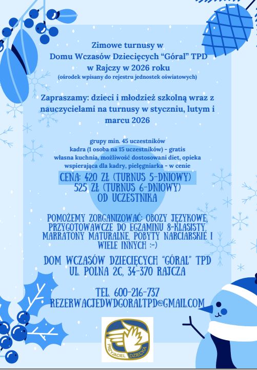 Informacja o wyjazdach na turnus do DWD Góral Rajcza 2025